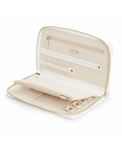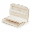 • Storage: 1 earring tab, 1 ring tab, 2 zip compartments, 4 snap-on necklace hooks with pocket