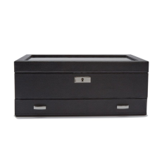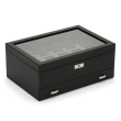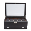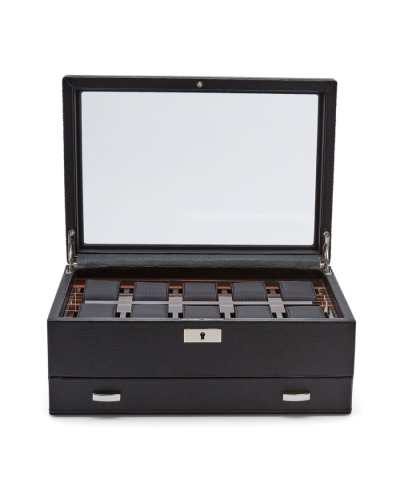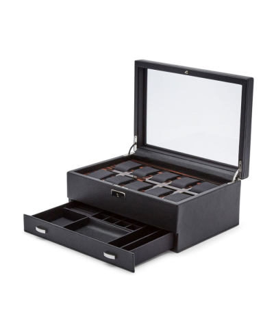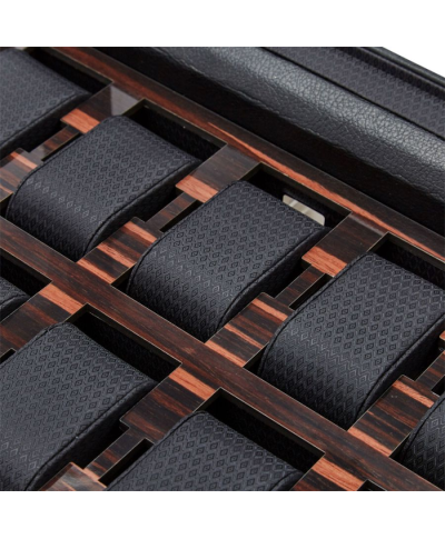 • Roadster 10 piece watch box wrapped in leather with details of ebony macassar polished wood