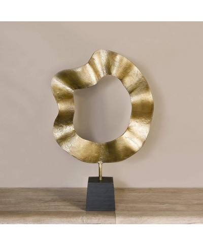 Make your home a touch more modern with this decorative piece. It features a circular metallic design, a gold finish, and a contrasting black base for easy display.