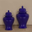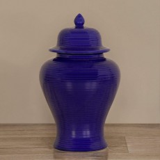 • Chic and classic. This blue jar features, an easily removable lid, and plenty of storage space.