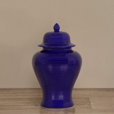 • Chic and classic. This blue jar features, an easily removable lid, and plenty of storage space.