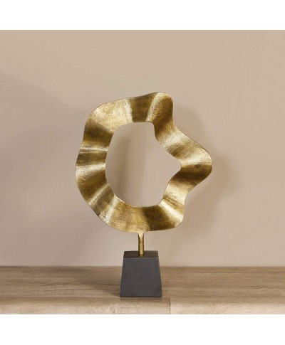 • Make your home a touch more modern with this decorative piece. It features a circular metallic design, a gold finish, and a contrasting black base for easy display.