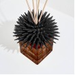 • A polished ceramic sculpture resting on a dark glass base