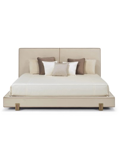 • The Luso Bed is a very delicate and smooth piece, featuring special details that gives it an extra charming character. Upholstered in any Fabric, with a contrasting piping detail.