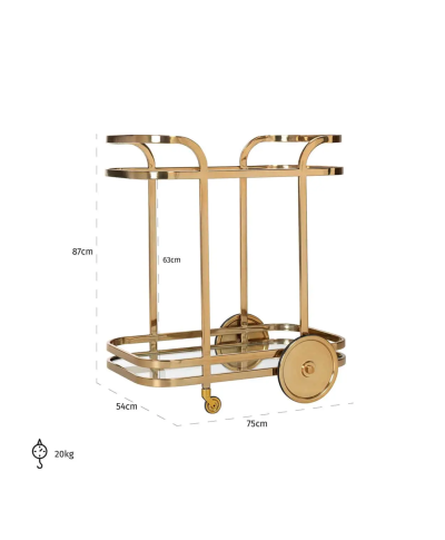 • Gold Trolley with Glass is an elegant golden trolley made of stainless steel and aluminum.