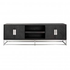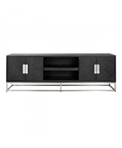 • The TV chest of drawers 185 Blackbone silver 4 doors is made of oak and stainless steel. The black TV commode from the Blackbone collection gives your interior an elegant, yet solid accent.