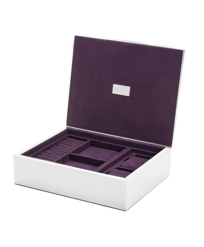 • Storage: Multiple option trays, two suspended watch cuffs, ring slots, multiple small compartments for jewellery, pens, cufflinks or other trinkets