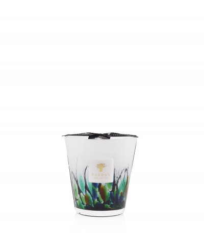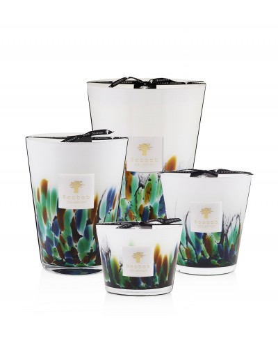 • The Amazonia scented Baobab candle is presented in hand-blown opaline glass, blending turquoise, blue and brown glass confetti is inserted.
