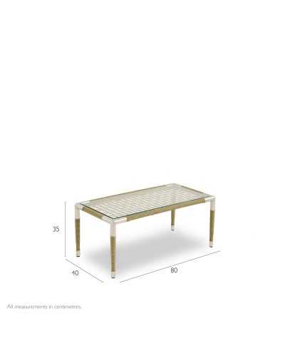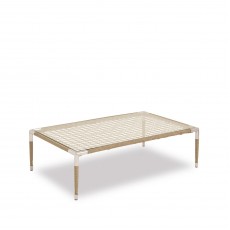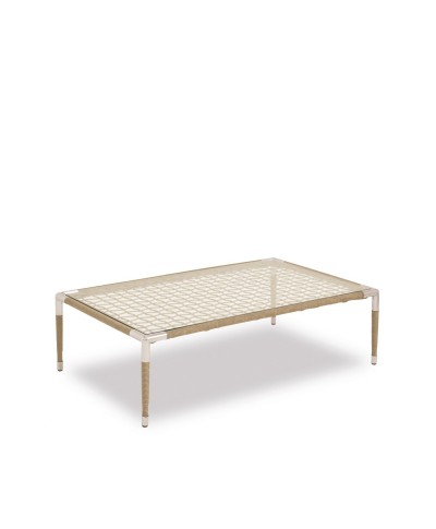 Marina Coffee Table 80cm TEAK / SS with Taupe Rope & GLASS TOP