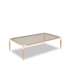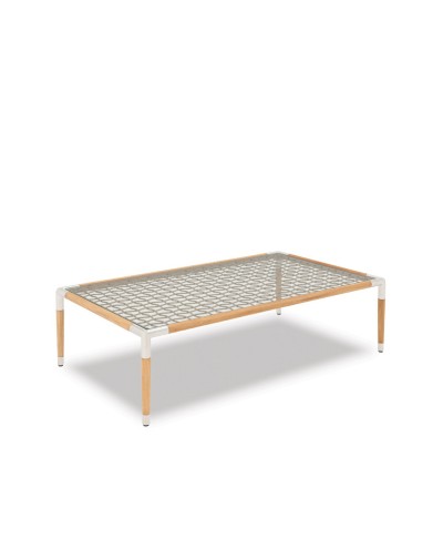 Marina Coffee Table 120cm TEAK / SS with Taupe Rope & GLASS TOP