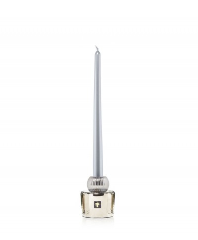• The Twins Platinum candleholders are made of hand-blown glass covered with platinum metallic paint.