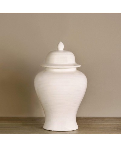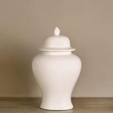 • Sometimes, simple pieces make the biggest statement. This beautiful jar features a textured off-white finish, a stylish silhouette, and a removable lid for easy storage.