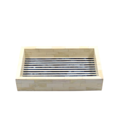 TRAY STRIPES WHITE BONE AND BLUE RESIN