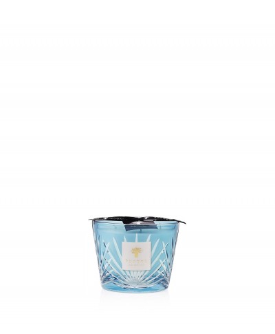 • The West Palm scented Baobab candle is poured in a hand-blown turquoise glass, engraved with a motif reminiscent of the iconic palm leaves.