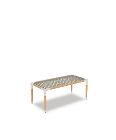 مارينا طاولة قهوة ٨٠ سم خشب التيك طوبي بحبل وسطح زجاج